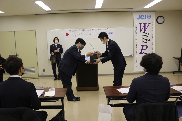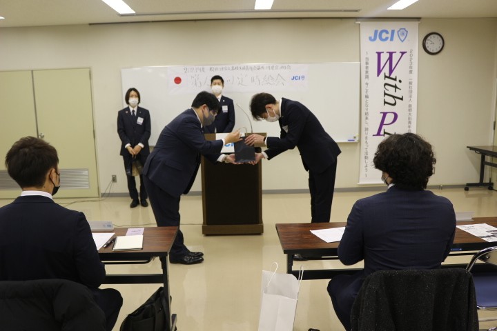 2022年度理事長 佐藤 昭典 君に、1年間の感謝を込め、感謝状の贈呈をさせていただきました。