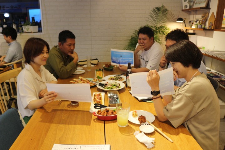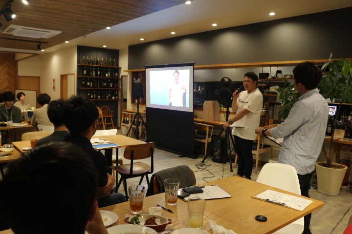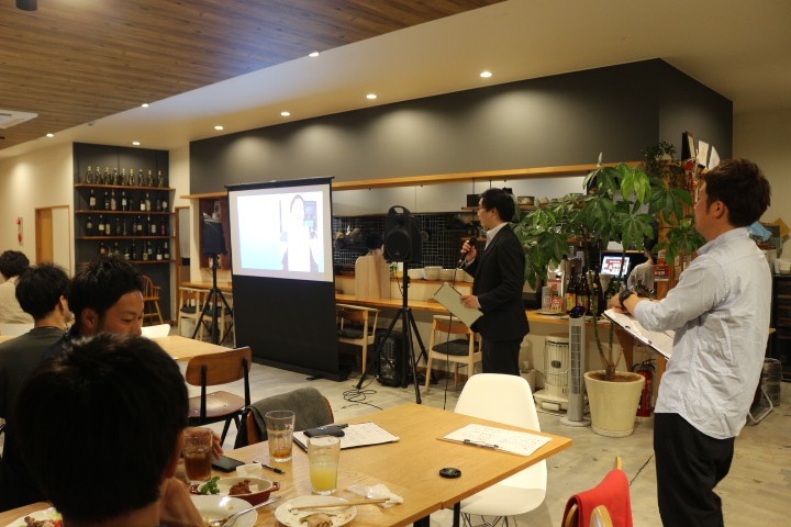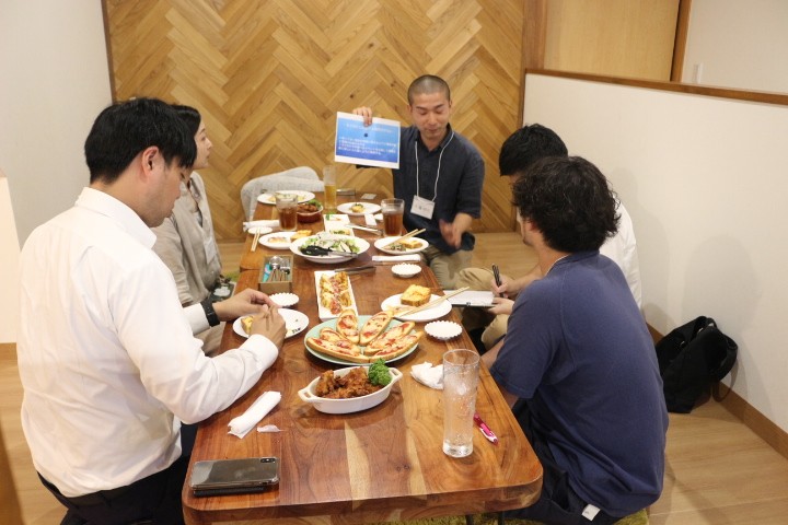 食べながら飲みながらのディスカッションは大いに盛り上がり、様々なアイディアを生み、最後に発表を行いました。